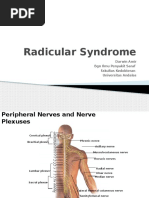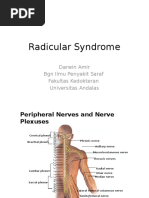 Lateral protrusion:-common will cause pain and stiffness of [Link] often radiate to scapular region and to [Link] not involve multiple nerve root,but involve the root emerges above the corresponding vertebra. When C6 nerve root is involved pain will be complined of at shoulder tip,outer border of upper arm and dorsum of [Link] is sensory weakness of lateral border of upper arm,[Link] of jerks C7-pain at shoulder tip,back of upper arm and forearm,sensory loss,weakness of jerk.