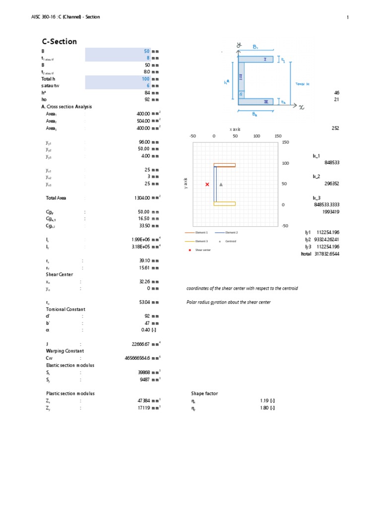 yo : 0 mm coordinates of the shear center with respect to the centroid