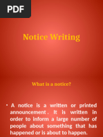 A notice is a written or printed announcement (Example - a notice for sale). It is written in order to inform a large