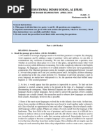 Question 1: You are Asma/Ashish, the Head Girl/Boy of Maria International School. Your school is soon going to