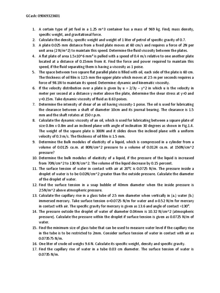 3. A plate 0.025 mm distance from a fixed plate moves at 60 cm/s and requires a force of 2N per