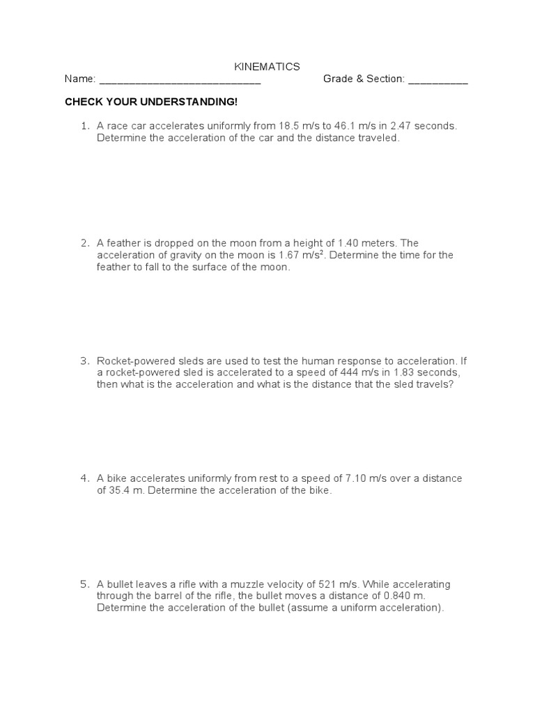 1. A race car accelerates uniformly from 18.5 m/s to 46.1 m/s in 2.47 seconds.