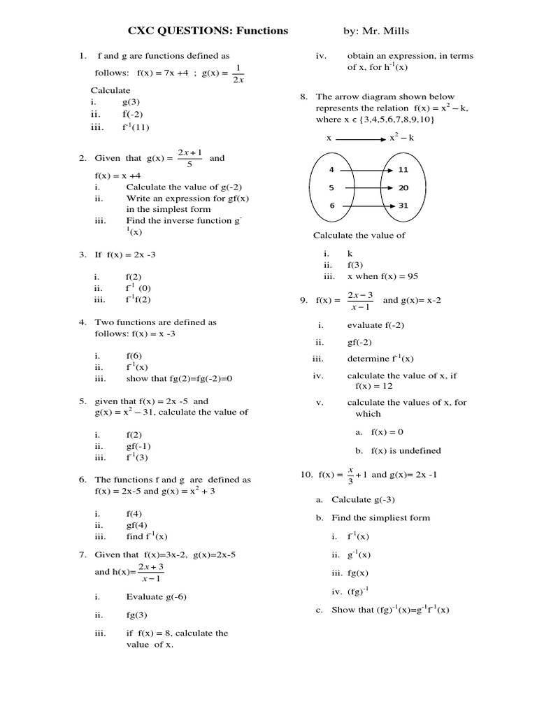 CXC QUESTIONS: Functions by: Mr. Mills