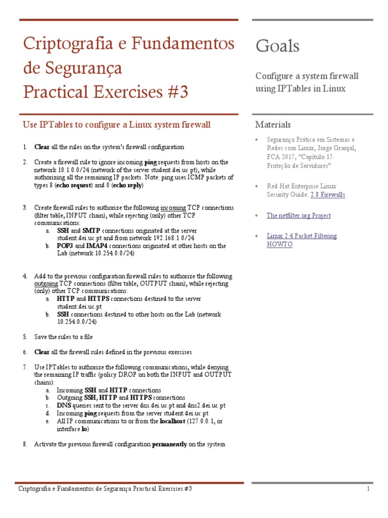 Practical Exercises #3 using IPTables in Linux