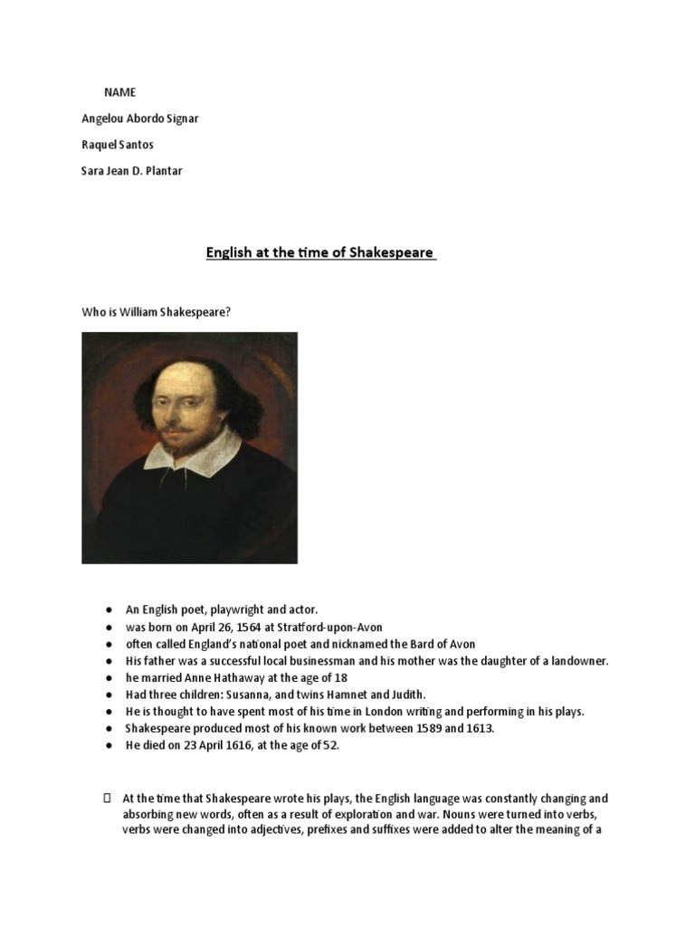 ⮚ At the time that Shakespeare wrote his plays, the English language was constantly changing and
