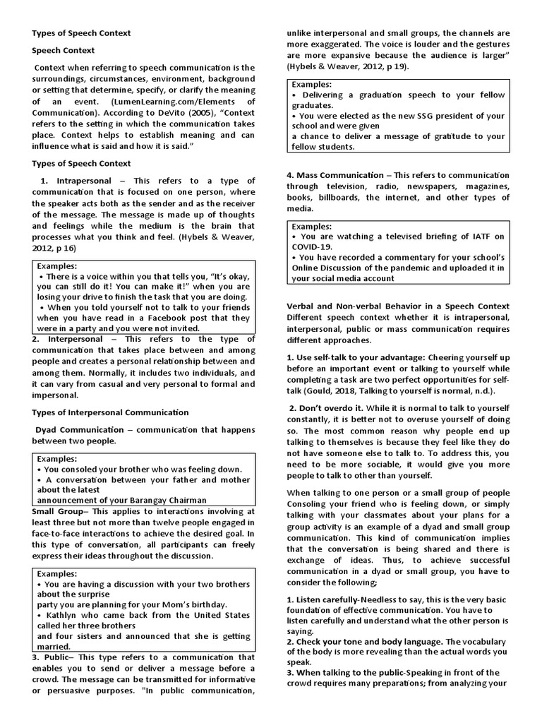 Types of Speech Context unlike interpersonal and small groups, the channels are