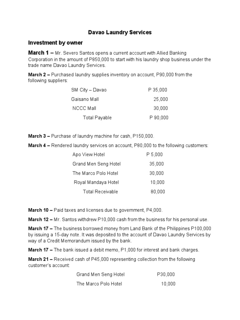 March 30 - The following expenses were paid by Davao Laundry Services for the