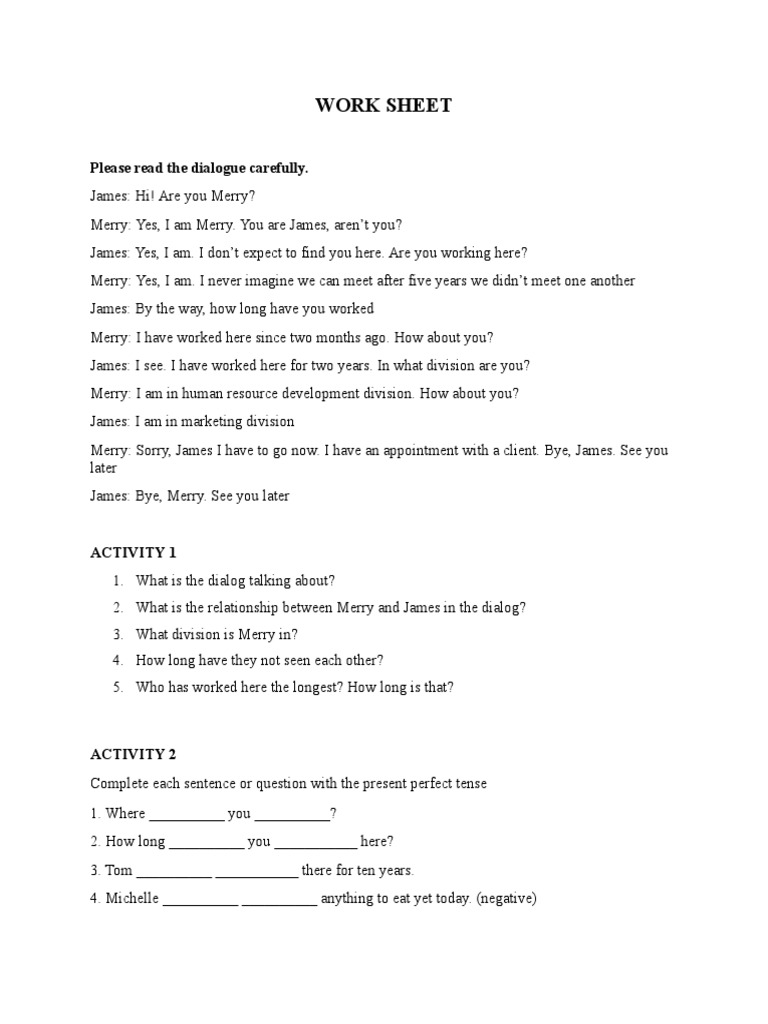 WORK SHEET
