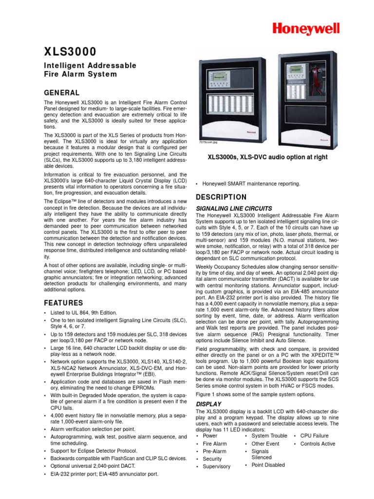 ally intelligent they have the ability to communicate directly The Honeywell XLS3000 Intelligent Addressable Fire Alarm