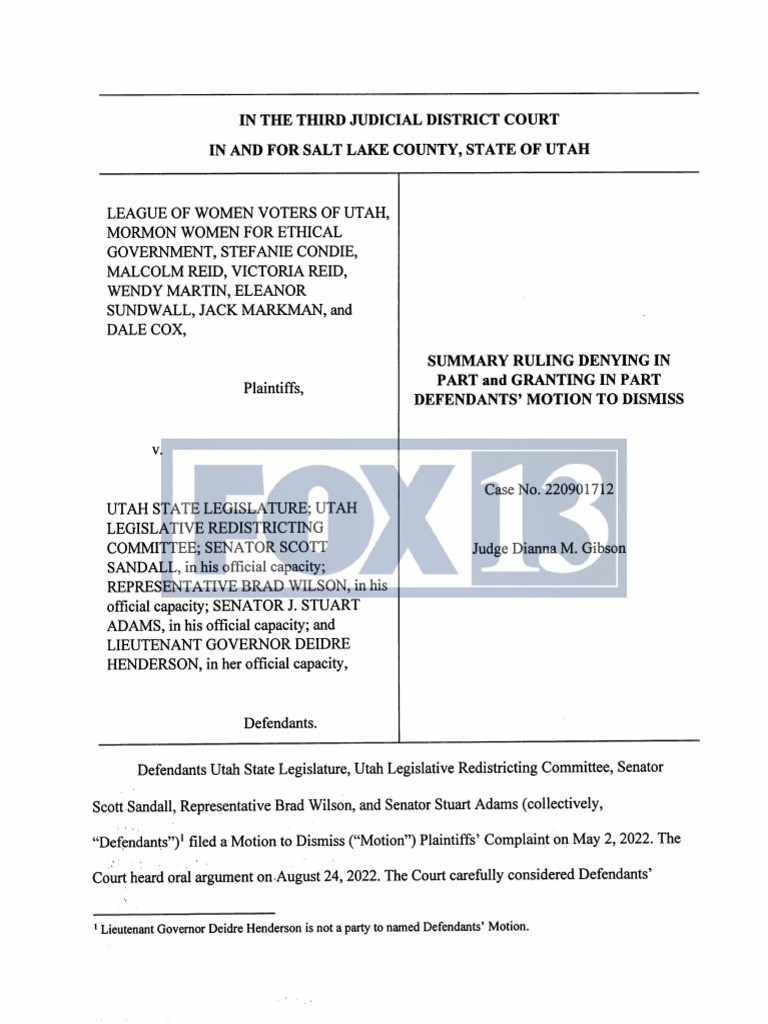 Defendants Utah State Legislature, Utah Legislative Redistricting Committee, Senator