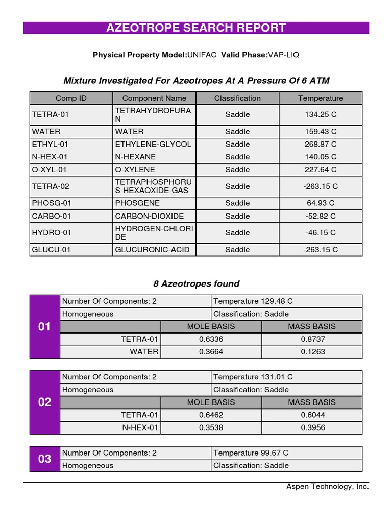 Mixture Investigated For Azeotropes At A Pressure Of 6 ATM