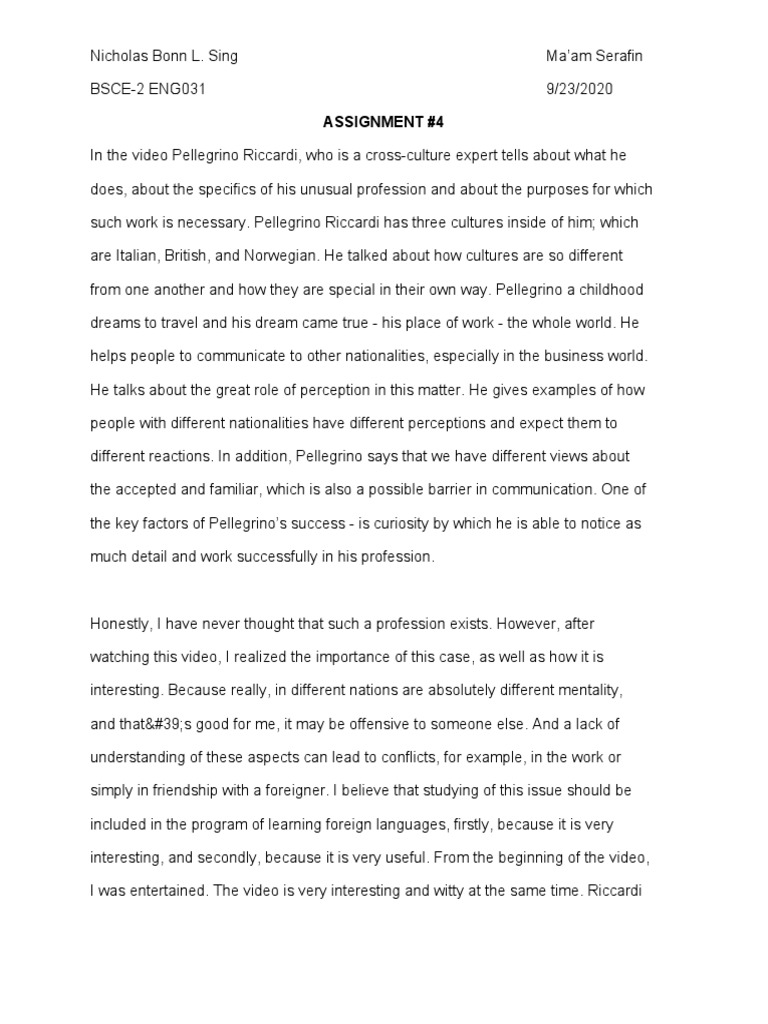 are Italian, British, and Norwegian. He talked about how cultures are so different