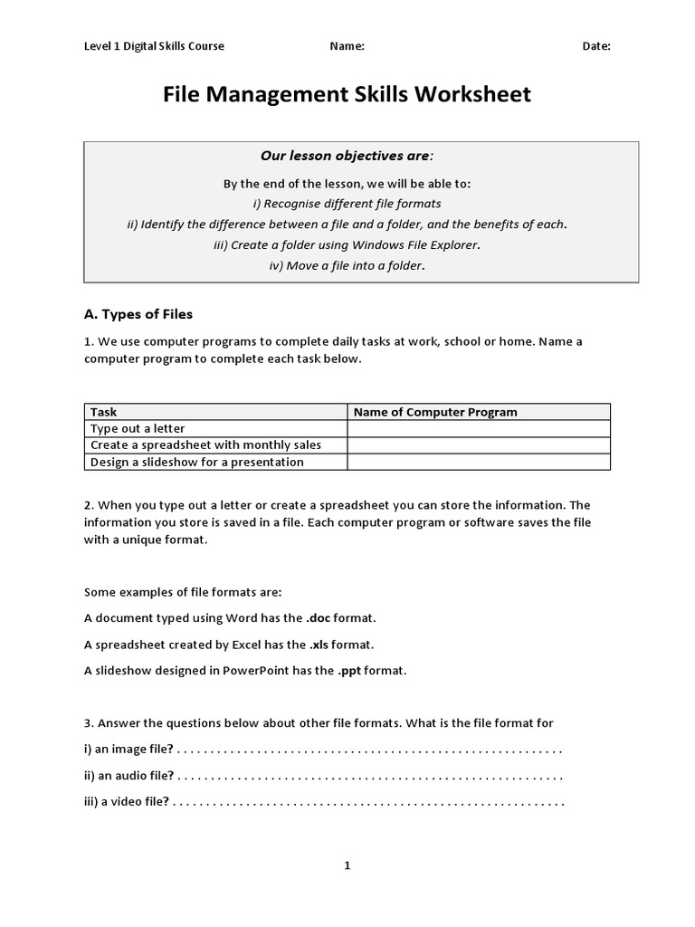 ii) Identify the difference between a file and a folder, and the benefits of each.