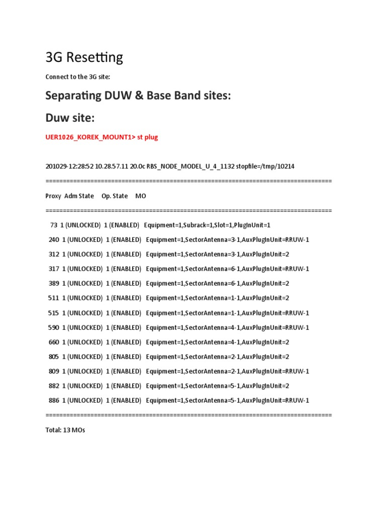 498 1 (ENABLED) Equipment=1,RbsSubrack=1,RbsSlot=11,AuxPlugInUnit=RUW-1,DeviceGroup=RUW