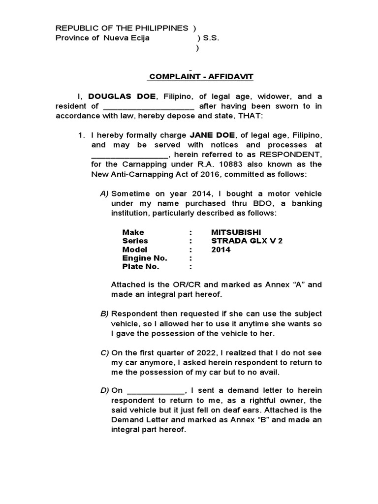 1. I hereby formally charge JANE DOE, of legal age, Filipino,
