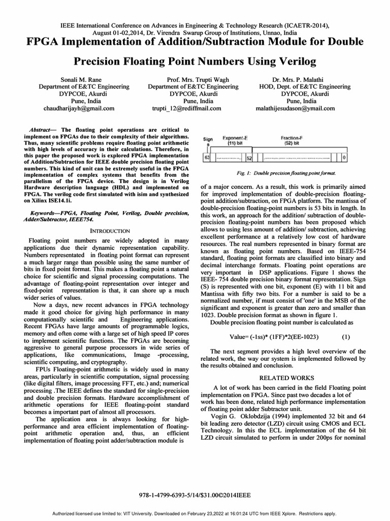 Precision Floating Point Numbers Using Verilog