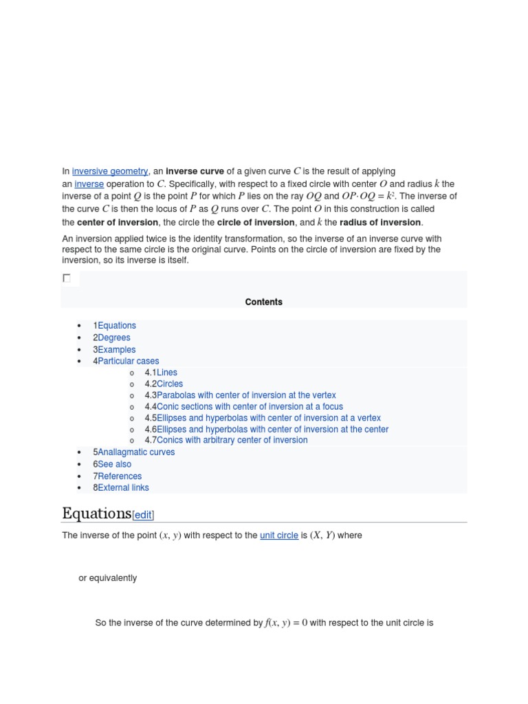 In inversive geometry, an inverse curve of a given curve C is the result of applying