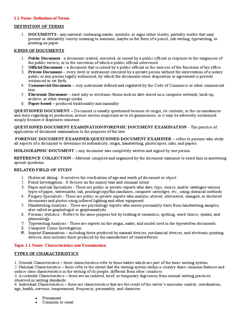 application of document examination to the purposes of the law.