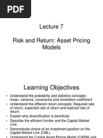 Capital asset pricing model (CAPM) and security market line (SML).