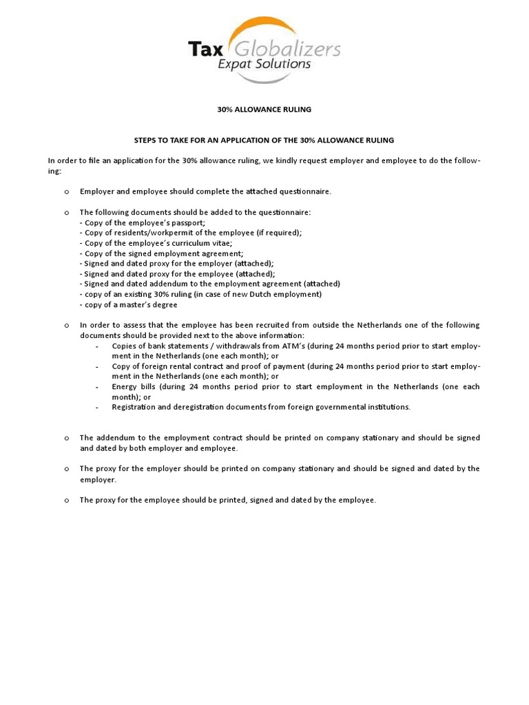 quest for the 30% ruling, to file and sign the necessary Netherlands individual income tax returns and to do all what is