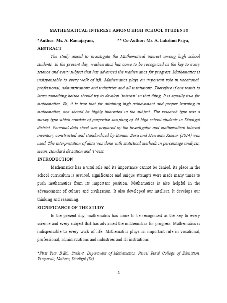 MATHEMATICAL INTEREST AMONG HIGH SCHOOL STUDENTS