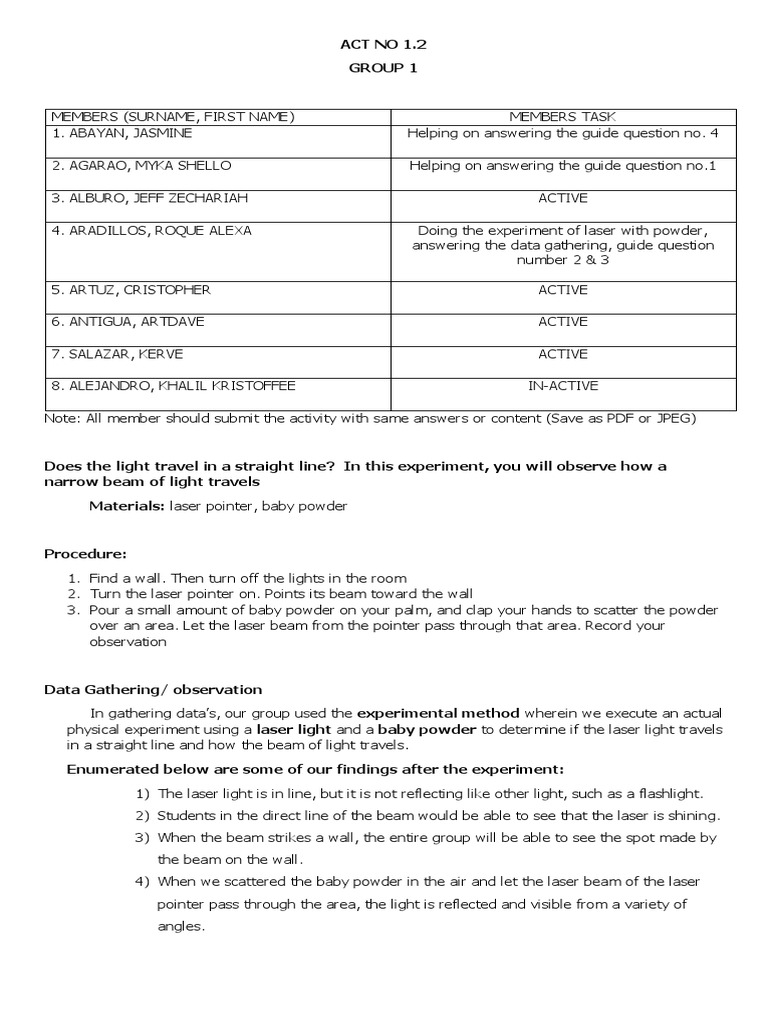 Note: All member should submit the activity with same answers or content (Save as PDF or JPEG)