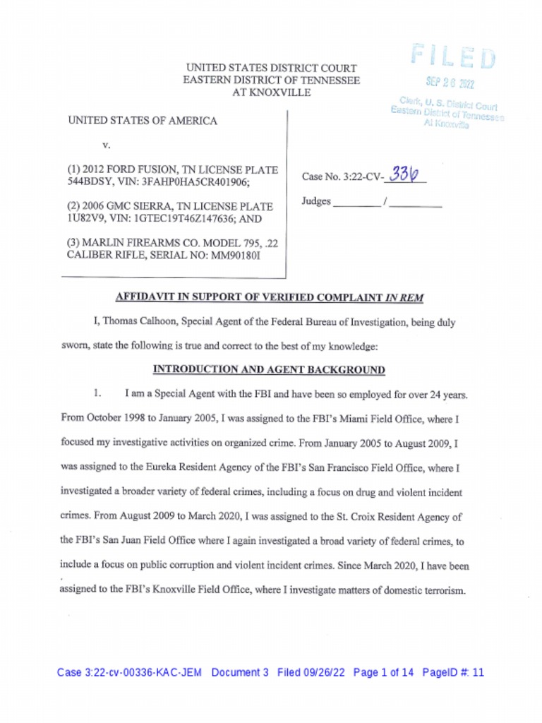Unsealed Affidavit Regarding Mark Thomas Reno