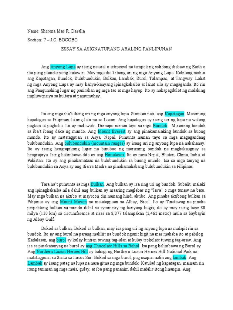 ESSAY SA ASIGNATURANG ARALING PANLIPUNAN