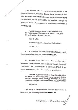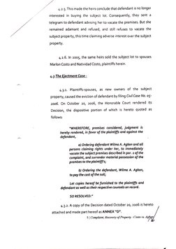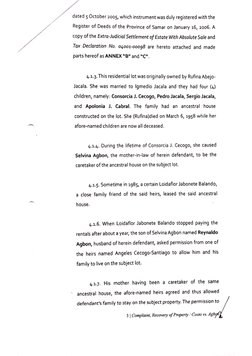 3 | Complaint, Recovery of Property / Costo vs. Agbof]stay was on condition that they will pay the annual realty taxes as a