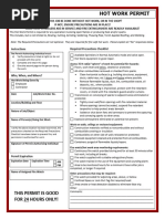 The above work location has been prepared for Hot Works in • All materials removed from the hot work area or covered with