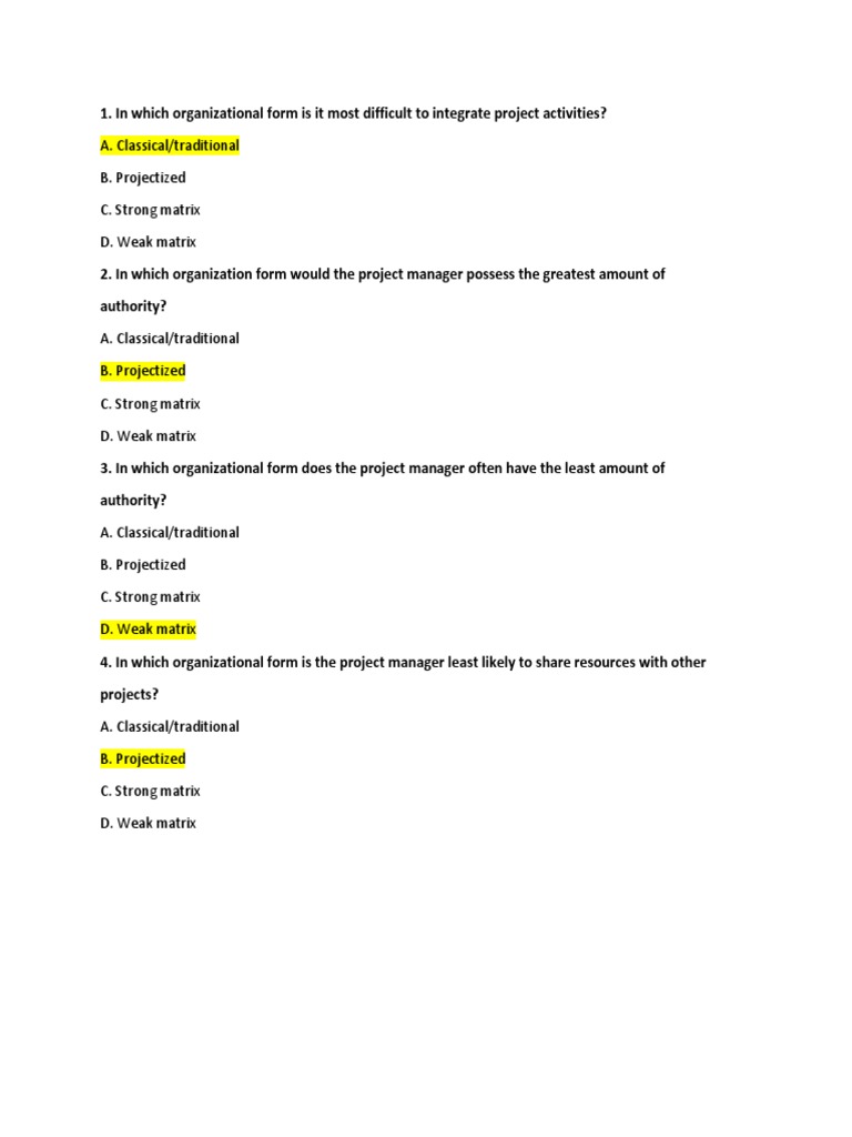 5. In which organizational form do project managers have the greatest likelihood of possessing