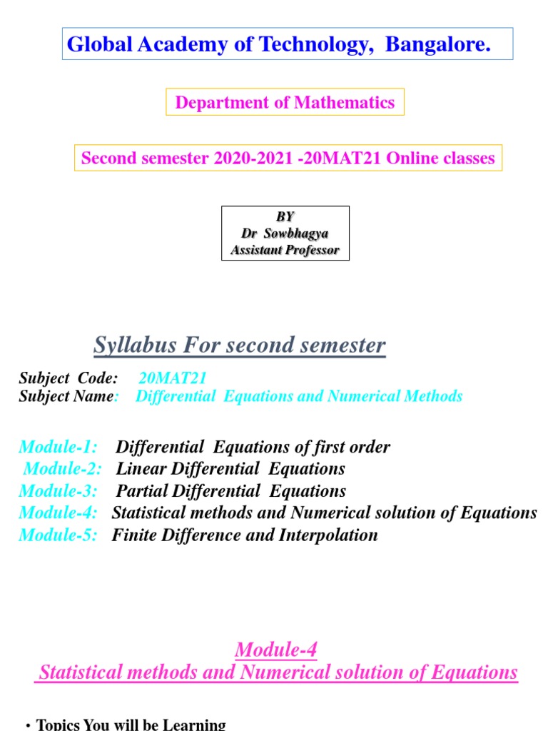 Subject Name: Differential Equations and Numerical Methods