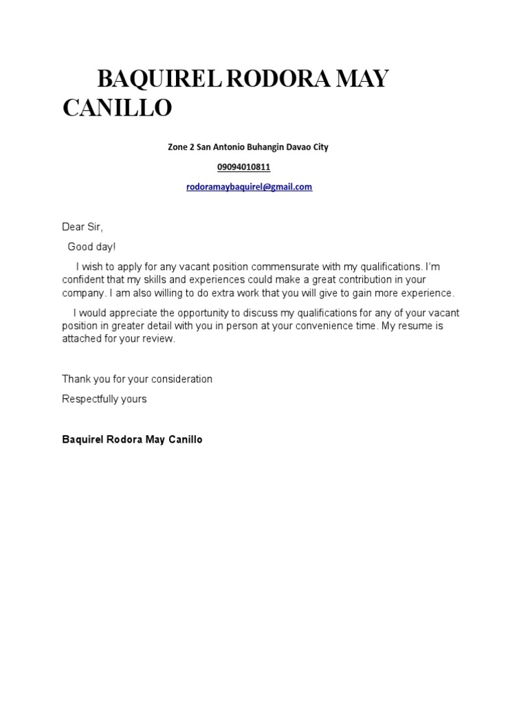 I wish to apply for any vacant position commensurate with my qualifications. I’m