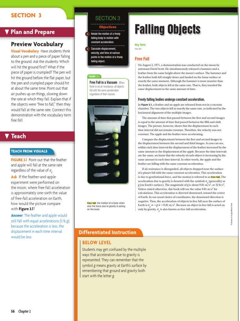 the objects were “free to fall,” then they In Figure 3.1, a feather and an apple are released from rest in a vacuum