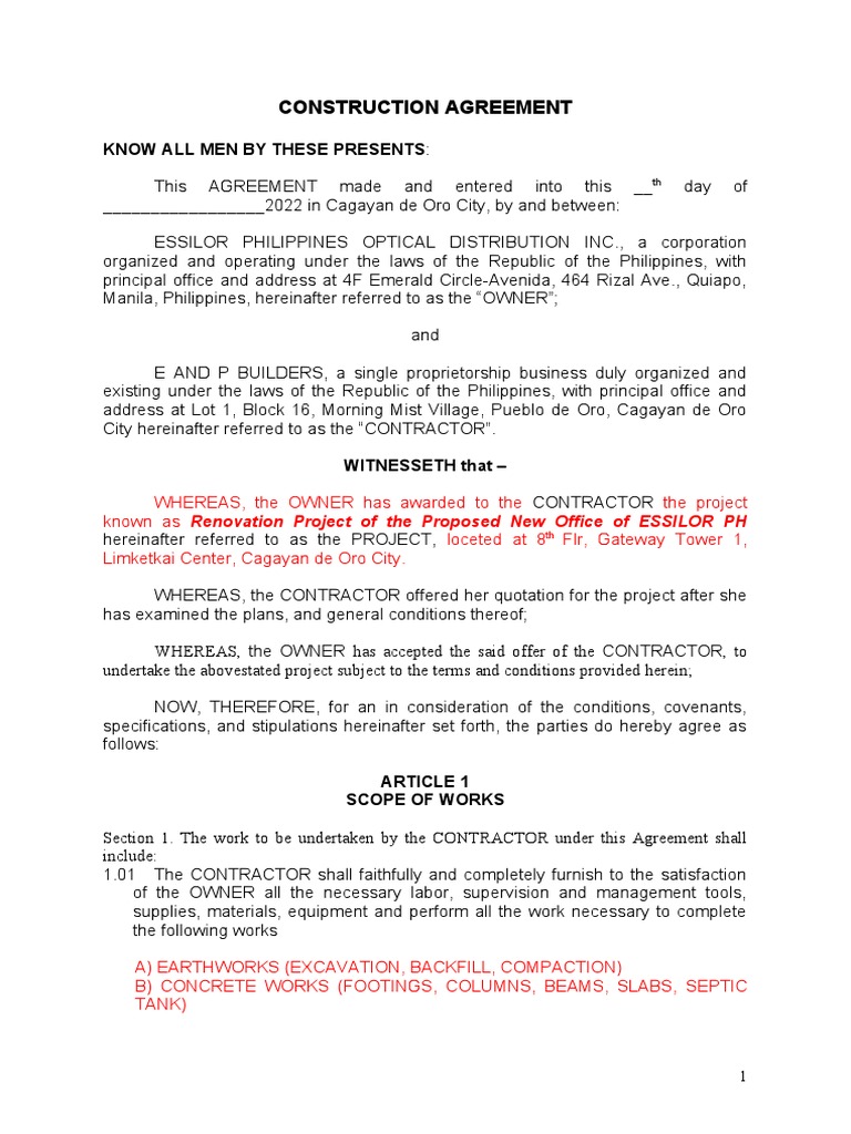 known as Renovation Project of the Proposed New Office of ESSILOR PH