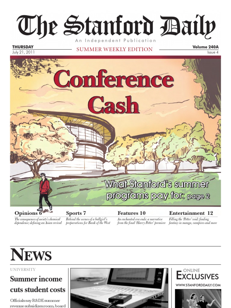 Every summer, Stanford Conferences hosts between 250 and 300 conferences on campus with a total of between 16,000 and 20,000 guests. These conferences cover a broad spectrum of subjects and audiences of nearly all ages. All Residential & Dining Enterprises (R&DE) revenue generated from summer conferences hosted on campus is used to subsidize the cost of room and board for students during the rest of the year, according to University officials. The Stanford Conference Office was opened in the 1960s and has grown significantly in the decades since then. It is currently one of the largest collegiate conference operations in the world; in fact, Stanford represented the largest conference operation sample in a recent study by the Association of Collegiate Conference and Event Directors, International (ACCED-I), which represents conference professionals in institutions of higher education. Every conference . . . is directly aligned with and tied in some way to teaching, learning and/or researching at Stanford, wrote executive director of Stanford Conferences Philip Gin in an email to The Daily. Typically, that means that faculty and/or students are involved with teaching the content of the conference, or they are attending the conference to learn more about the content. The largest of these conferences include the Education Program for Gifted Youth (EPGY), an academic opportunity for middle and high school students that has run since 1991; All Sports Camp, a daytime sports activities camp for 7- to 12-year-old boys and girls that has existed for over 30 years; and High School Summer College, a program that allows 16- to 20-year-olds who have not yet attended college to take summer classes at Stanford for college credit. The University also allows non-Stanford undergraduates and graduate students to take Stanford courses during the summer for transfer credit to their university or college. Student Housing facilities are used by a variety of groups and organizations each summer, wrote executive director of Student Housing Rodger Whitney in an email to The Daily. This usage of our residences makes it possible for students to stay on campus in the summer for work, study or research; supports pro-