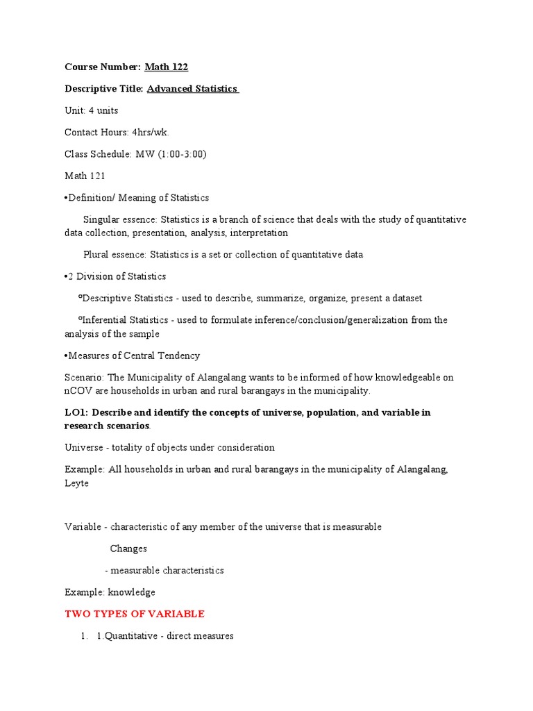 -Basic Statistical Concepts (Universe, Variable, Popuation, sample)