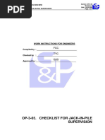 drop height is about 750 mm to 1.0 m and can be increased if the energy transfer is inadequate to mobilize the required capacity of the pile. However, what is required is the ability to provide enough energy by the falling weight, which is the product of weight and height. As such there is flexibility in choosing the hammer weight. The range indicated is a general range used in practice. It is possible to use higher weights. But a smaller weight is not recommended as this requires greater drop heights, which may cause poor test data. 3.2 The exposed length of pile has to be at least 1.0 diameter or width of the pile or 1.0 m whichever is greater above the penetration level for pile instrumentation. 3.3 The pile head will be protected for the impact by means of steel casing if considered necessary to protect the pile top being damaged. 3.4 A guide frame will be positioned onto the pile. The frame is used to guide the drop weight under the fall. If the pile driving hammer is used this frame would not be necessary. 3.5 Pile head cushion material is usually placed on top of the pile head so as to protect the pile head from damage under the hammer fall. 3.6 3 nos. of 6 mm diameter holes are drilled on two opposite sides of the pile for attachment of gauges at 1.5 diameters (or width) below the pile top. Two pairs of force transducer and accelerometer are bolted onto the pile using wall plugs. 3.7 During testing, the transducers will be connected to the Pile Driving Analyzer and its associated storage computer equipment via a main 19-wire cable (up to 50m long). 3.8 A piling hammer can be used to induce a driving force on to the pile. The drop weight is positioned and drop onto the pile under controlled height (a minimum of two impact records). Dynamic measurement of force and velocity will be collected by gauges attached to the pile. This data will be processed by the PDA to give immediate visual and permanent record onsite. 3.9 Each blow monitored by the PDA will be displayed on the built-in LCD screen/oscilloscope in the form of force and velocity traces for immediate data quality control and computation. The PDA will also provide onsite results such as: 1) Mobilized static load capacity based on the CASE method. 2) Pile Integrity - location and extent of damage. 3) Pile Stresses - maximum compression forces at pile top/ toe. 4) Hammer Performance - maximum energy transferred to the pile. 3.10 The transducers and accelerometers will be dismantled at the end of testing. PDA data will be transferred and stored in a disk for subsequent report and analysis. 3.11 The above procedure will be repeated for the next pile test. 3.12 A survey of the pile top is taken before and after the testing to obtain the permanent set per blow. The client is also to provide the bore log information