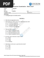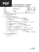 Grade 6 Computer Science - Second Semester Examination - July 2022