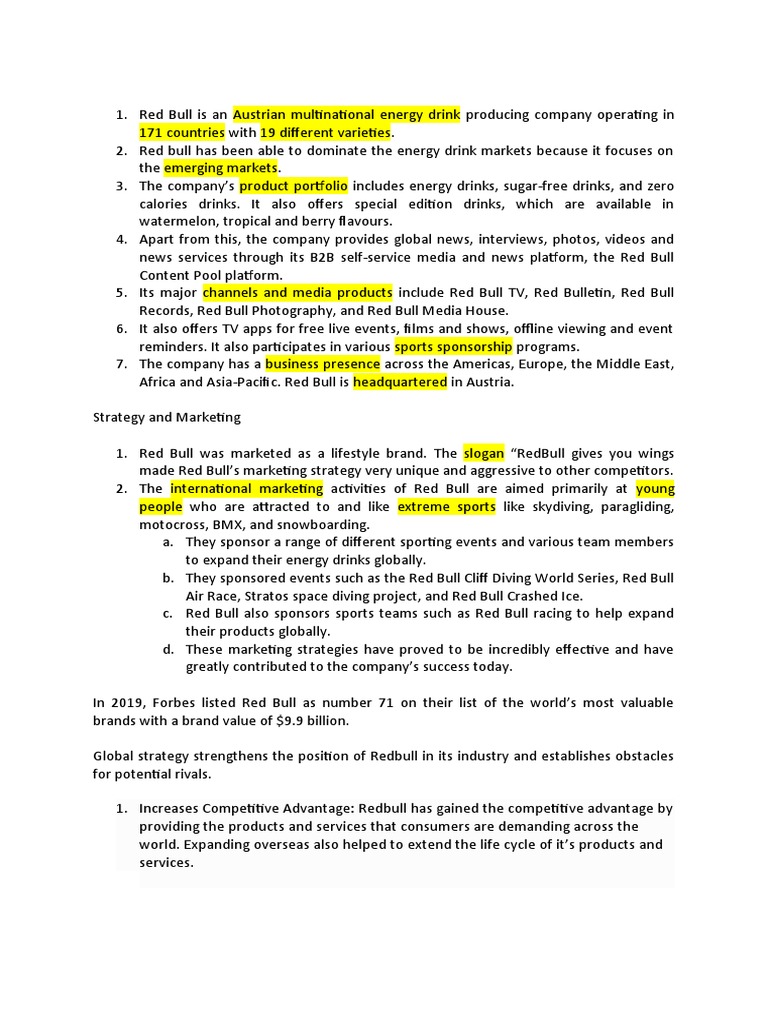 advantages of global strategy, It has given redbull the access to a whole new set of