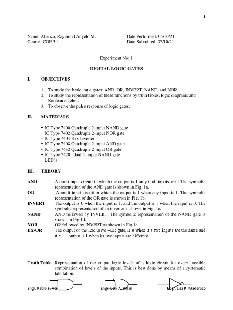 1. To study the basic logic gates: AND, OR, INVERT, NAND, and NOR.