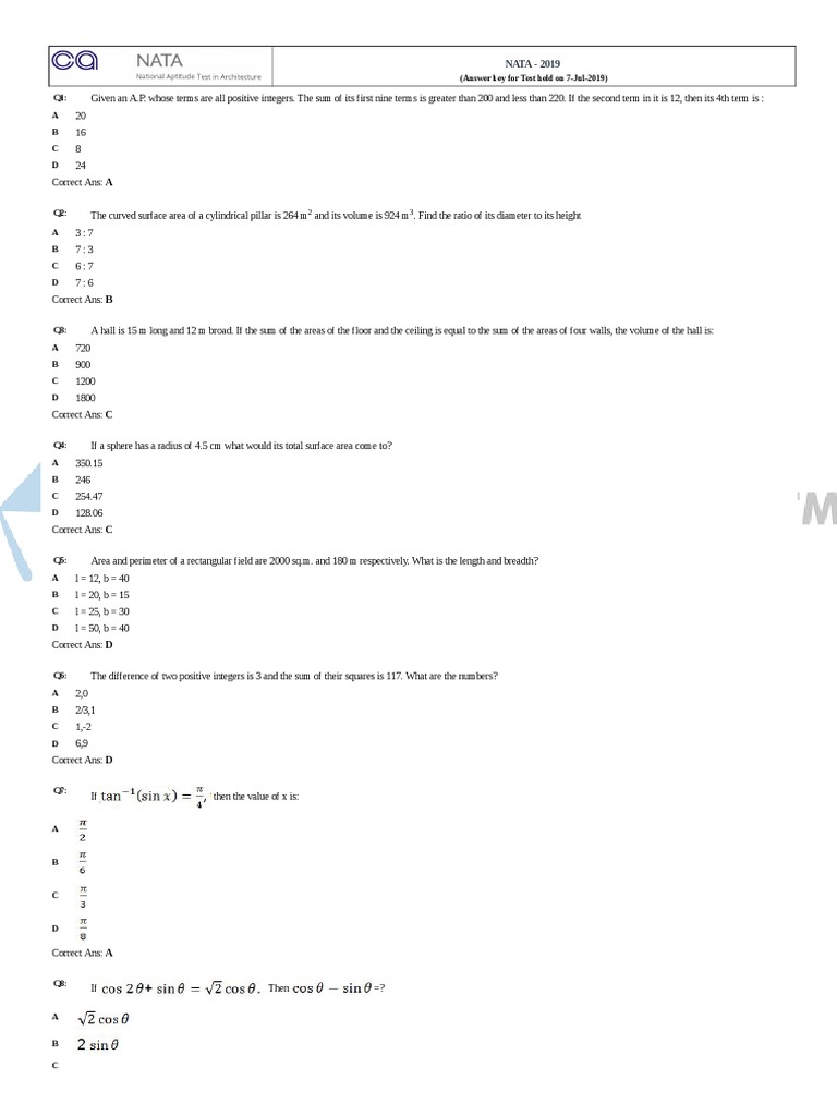 Q1: Given an A.P. whose terms are all positive integers. The sum of its first nine terms is greater than 200 and less than 220. If the second term in it is 12, then its 4th term is :