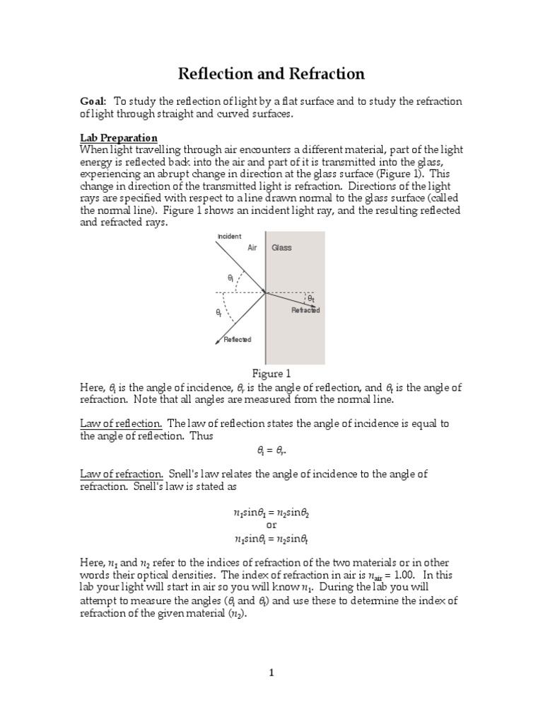 the normal line). Figure 1 shows an incident light ray, and the resulting reflected