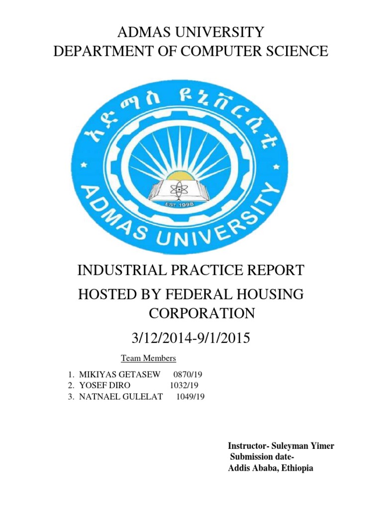The internship report focuses on my contribution towards Federal Housing Corporation as an intern and achievements