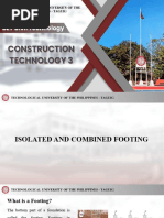 • Isolated footing - supports a single column load. May be classified as square, rectangular, rectangular