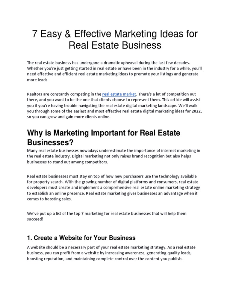 We've put up a list of the top 7 marketing for real estate businesses that will help them