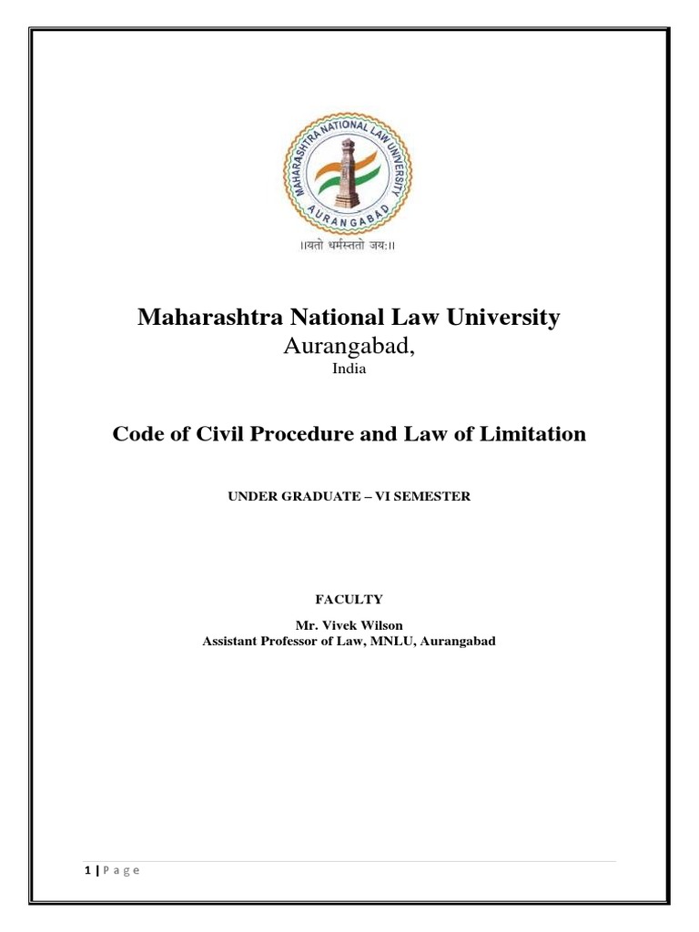 Code, 1908 and other sources of this subject. Students have to acquire knowledge in
