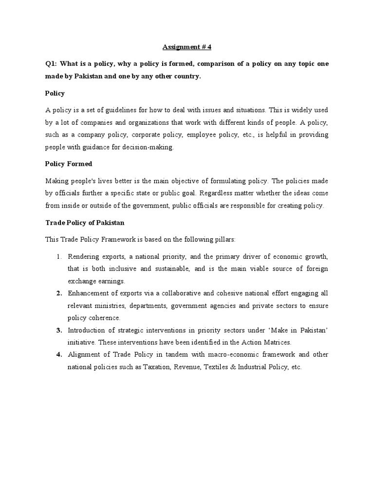 Q1: What is a policy, why a policy is formed, comparison of a policy on any topic one