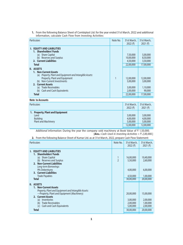 From the following Balance Sheet of Combiplast Ltd. for the year ended 31st March, 2022 and additional