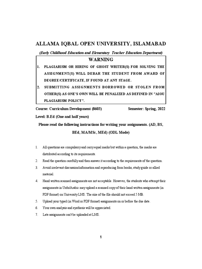 Q. 1 Evaluate the Natinal educational policies in Pakistan with refference to